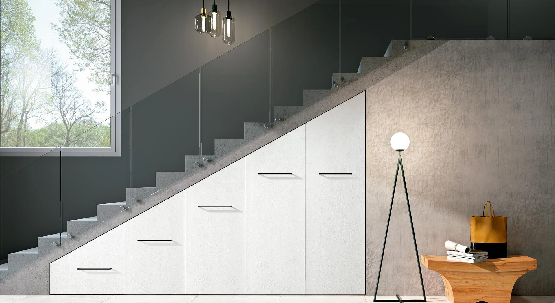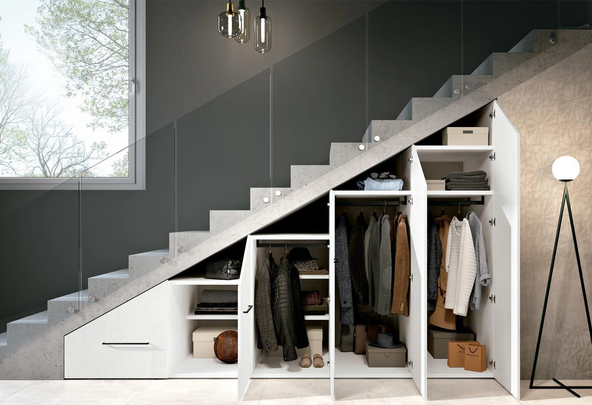 Affidabilità e comfort sono gli ingredienti che, insieme a un elevato contenuto estetico, connotano tutti gli Armadi su misura design del marchio Ferrimobili. Una diversificata gamma di arredi in melaminico come questo guardaroba con ante battenti in foto. Visitarci vuole dire vedere dal vivo diverse soluzioni del noto e rinomato marchio, sempre di alto contenuto estetico. Se vuoi ricreare una stanza bella e di grande qualità, compila il form o vieni da noi per ottenere infromazioni, complementi e accessori nell'ambito dell'Arredamento Casa. Armadio sottoscala Composizione 37 di Ferrimobili: se desideri arredatori professionisti per preventivi e progetti, realizza con noi la casa che hai sempre sognato.