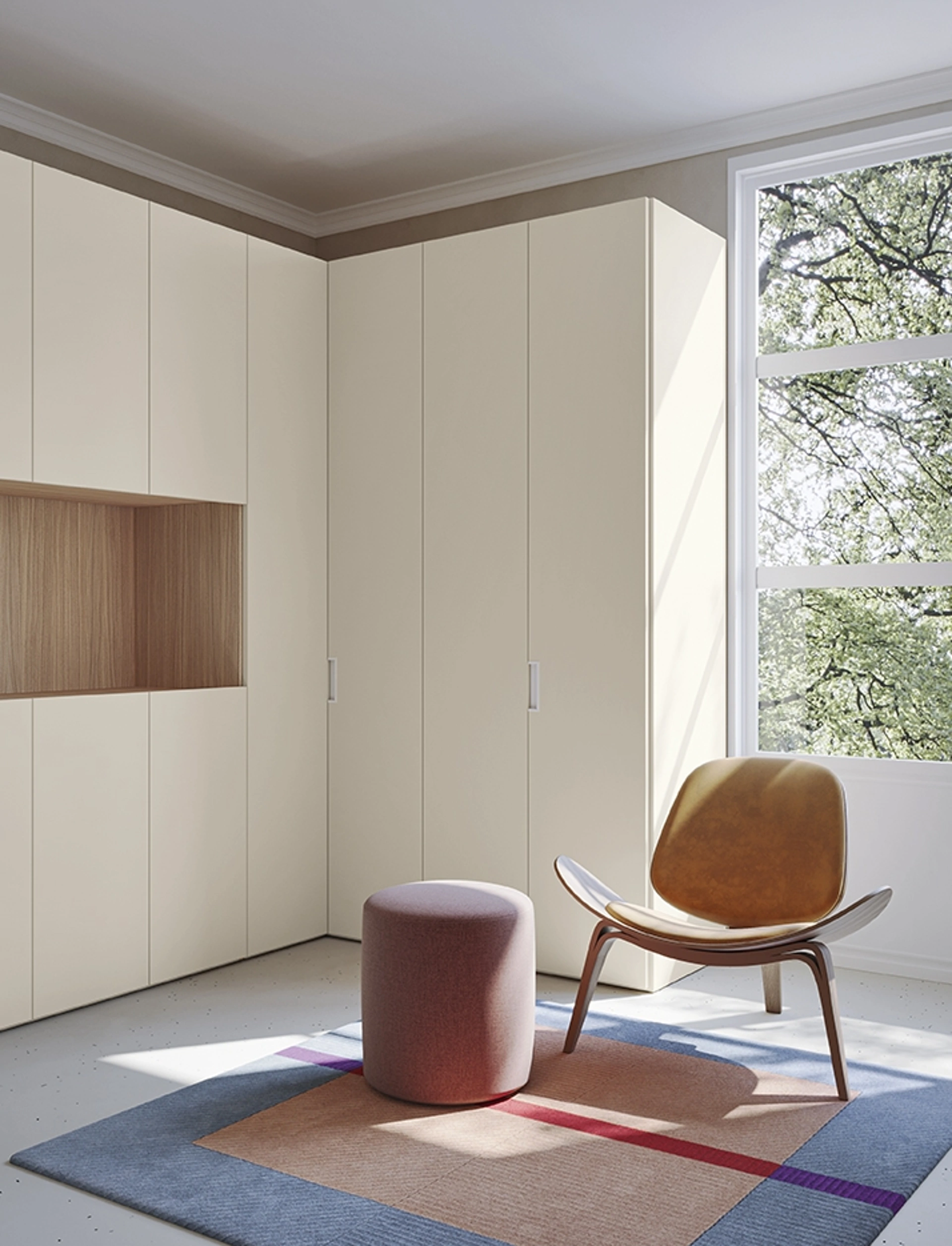 Se cerchi armadi ad angolo con ante battenti, clicca e scopri l'armadio Concreta N23 di Colombini Casa in melaminico.