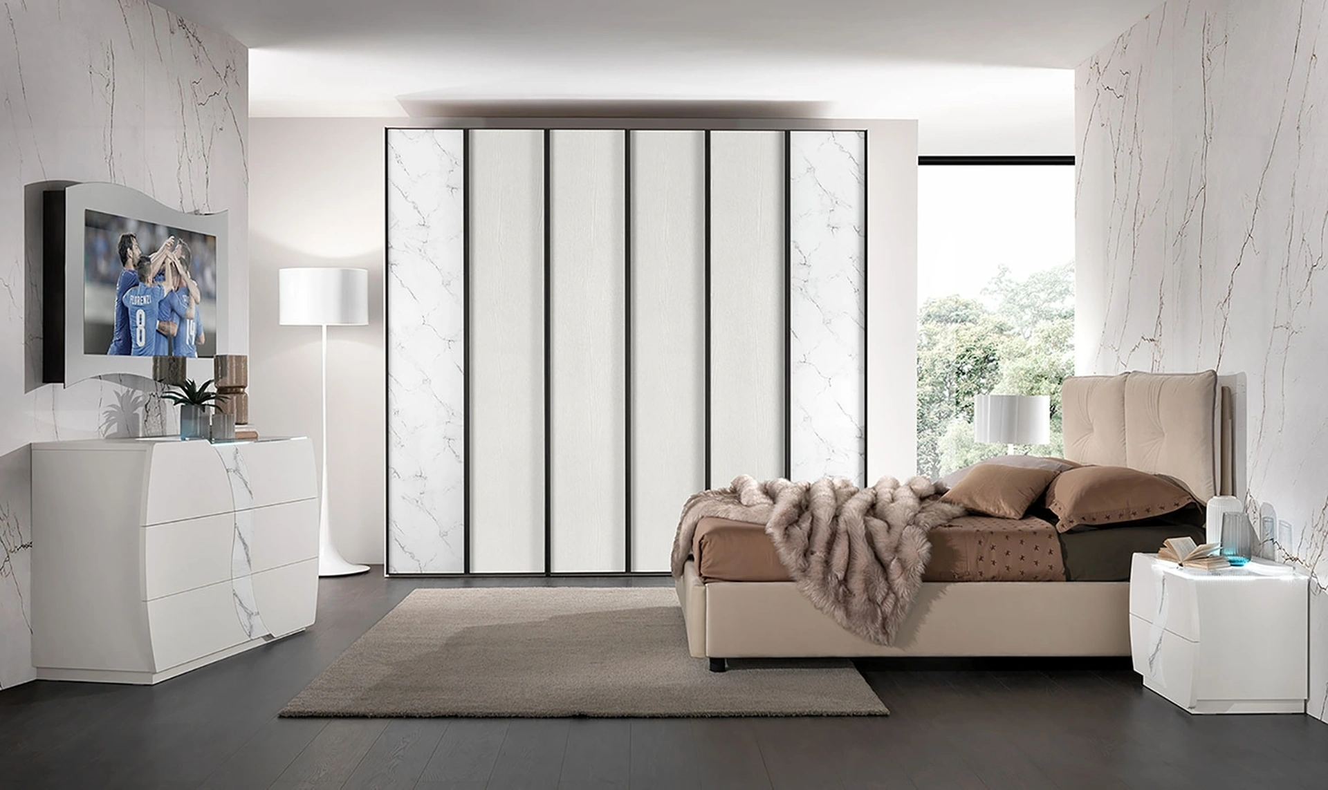 Nella nostra linea di Armadi a muro moderni con ante battenti potrai trovare anche il modello mostrato in foto, perfetto per chi cerca funzionalità e stile.