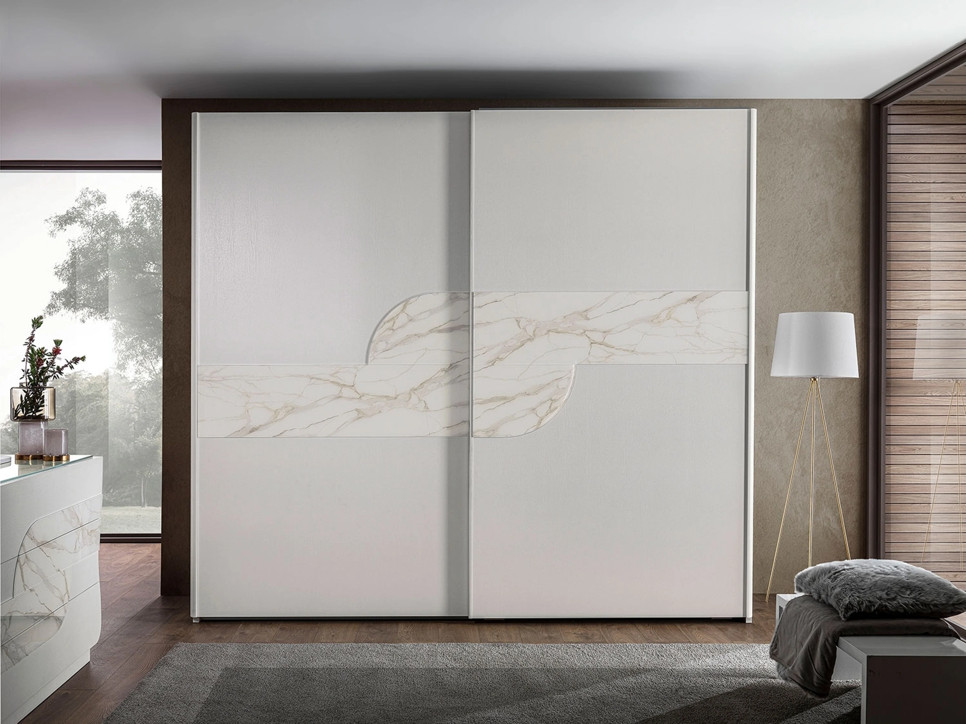 Questa proposta, tra i vari modelli a muro con ante scorrevoli di Mobil Piu, è simbolo di solidità, stile e raffinatezza duraturi nel tempo. Contattaci e scopri di più su una ricca gamma di Arredamento Casa per progettare la zona notte grazie a mobili contenitori in melaminico di elevata qualità. Per ultimare il progetto d'arredo in una camera funzionale ed esteticamente gradevole, abbiamo selezionato per te le più esclusive e interessanti soluzioni Mobil Piu, diverse per classe, grandezza, finitura e elementi accessori. Armadio Gaia Bianco Frassino di Mobil Più: compila il form per info e preventivi e progetta la tua casa come l'hai sempre immaginata.