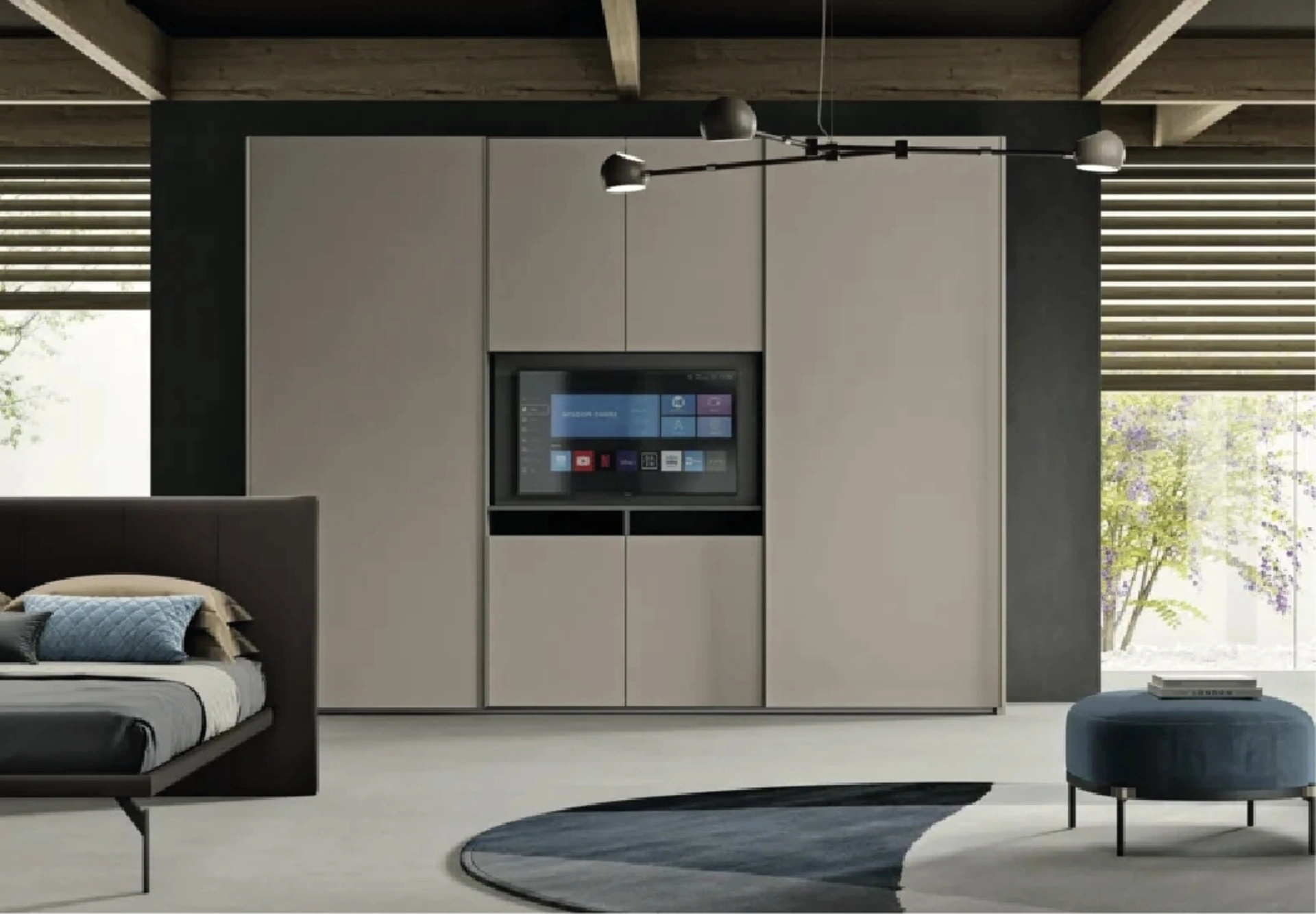 Eccoti l'armadio Young TV in melaminico di Artigianmobili! Una ricca gamma di armadi a muro con ante scorrevoli.