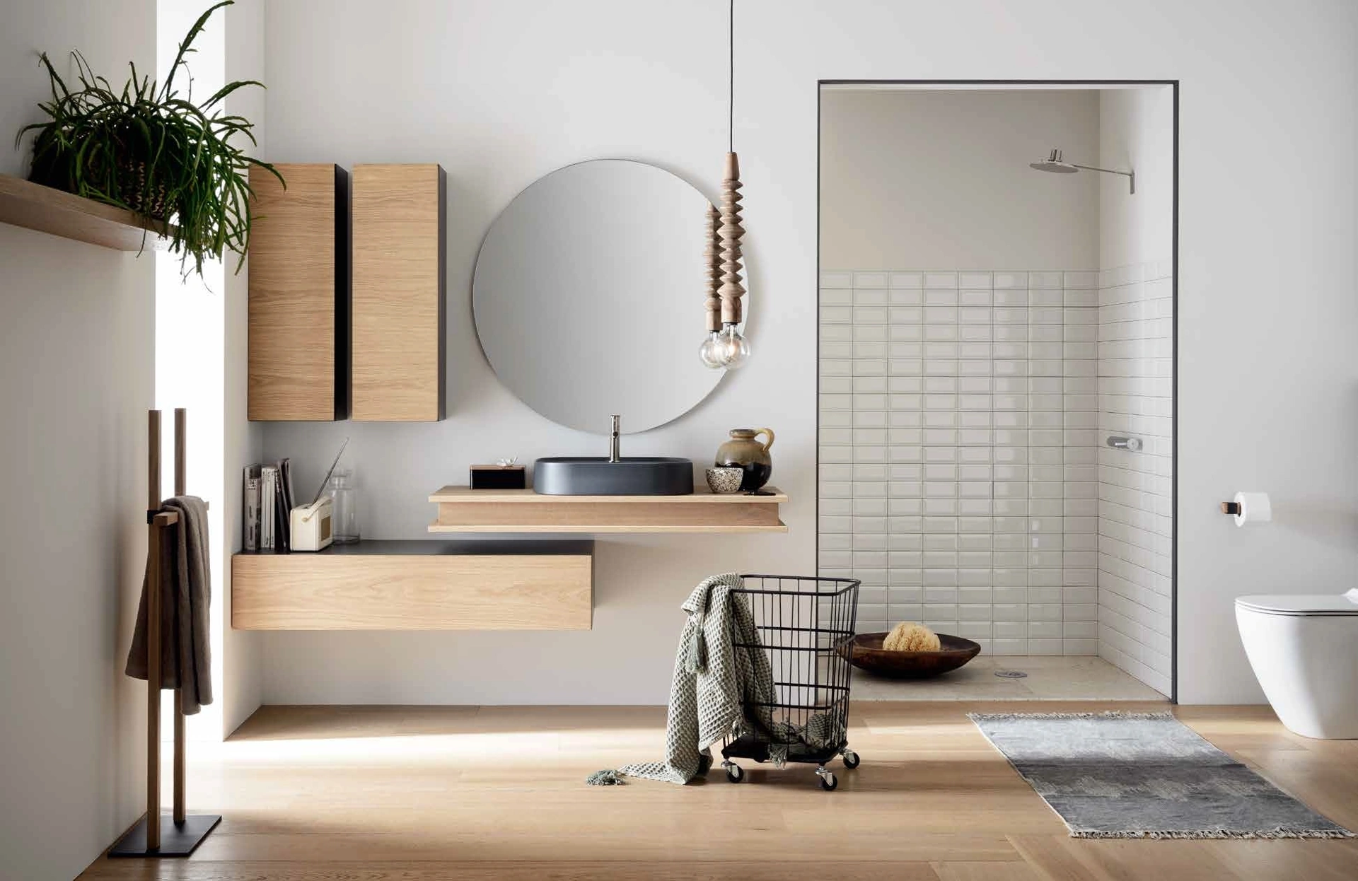 mobili bagno sospesi in legno del brand Alta Corte: clicca e scopri l'arredo bagno moderno Gap 04 per la stanza del benessere.