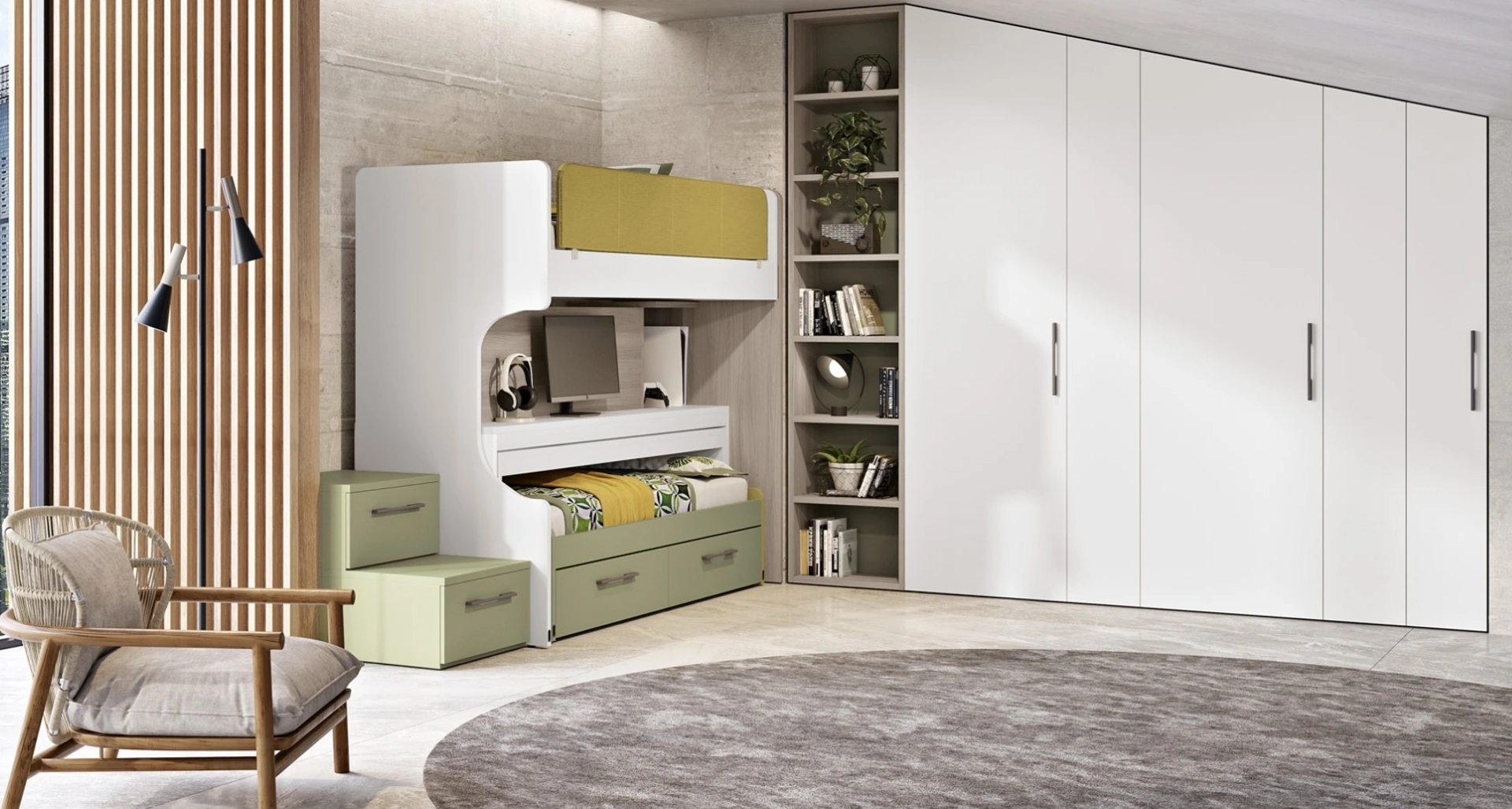 Gli accessori disponibili per le Camerette con letti scorrevoli di Ferrimobili sono sempre adattabili, per evitare qualunque problematicità di spazio e funzionalità.