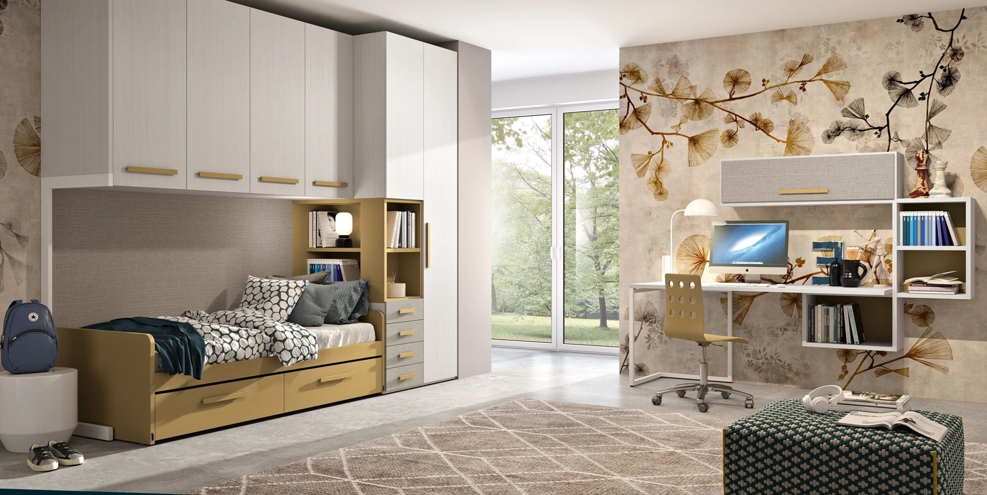 Con questa cameretta Cameretta 136 Ferrimobili, tra le soluzioni a ponte, potrai arredare stanze moderne per ragazzi.