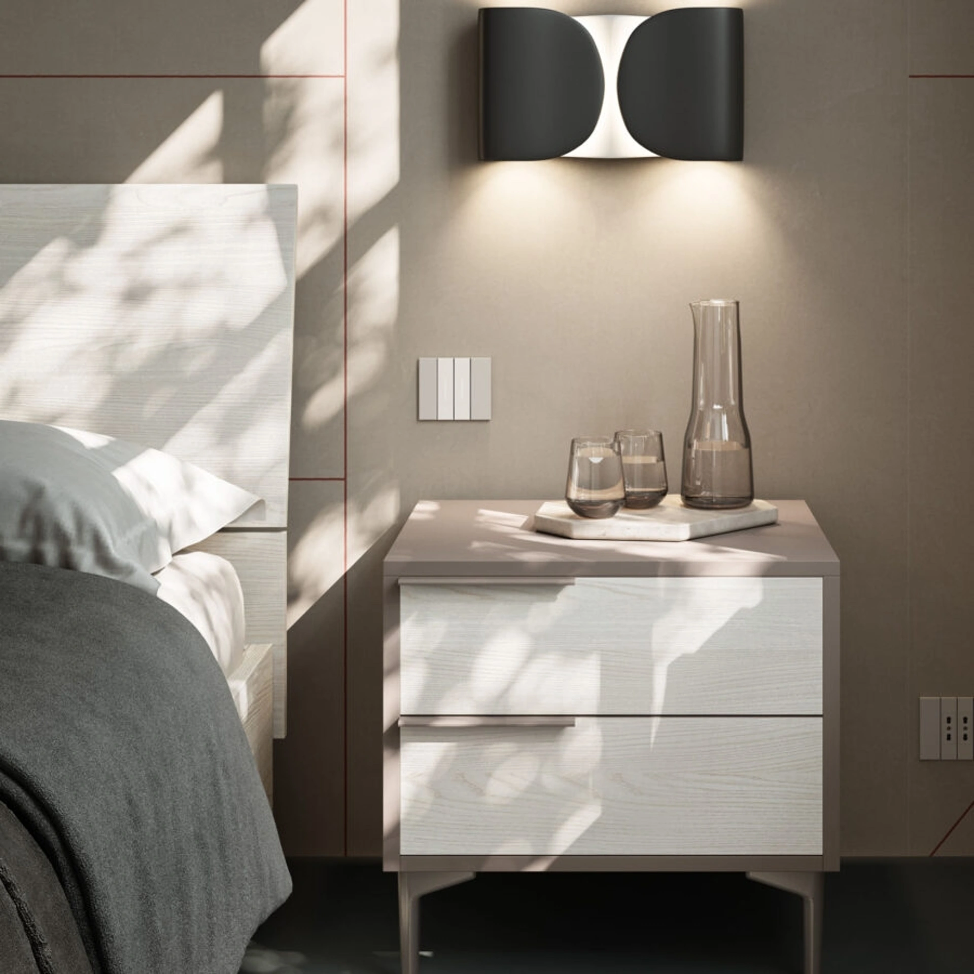 Il Gruppo Notte Fasto di Orme è una delle più esclusive soluzioni capaci di regalare un tocco di stile in più alla camera da letto, ricorrendo a materie di pregio. Da noi ti attende una ricca gamma di mobili e complementi moderni del rinomato brand, specialista nella realizzazione di Arredamento Casa per la zona notte. I Comodini, comò e gruppi notte possono essere coordinati al letto e al guardaroba oppure possono essere in voluto contrasto con essi: la scelta si baserà sulle reali possibilità di spazio e sulla ricerca di un equilibrato effeto finale.