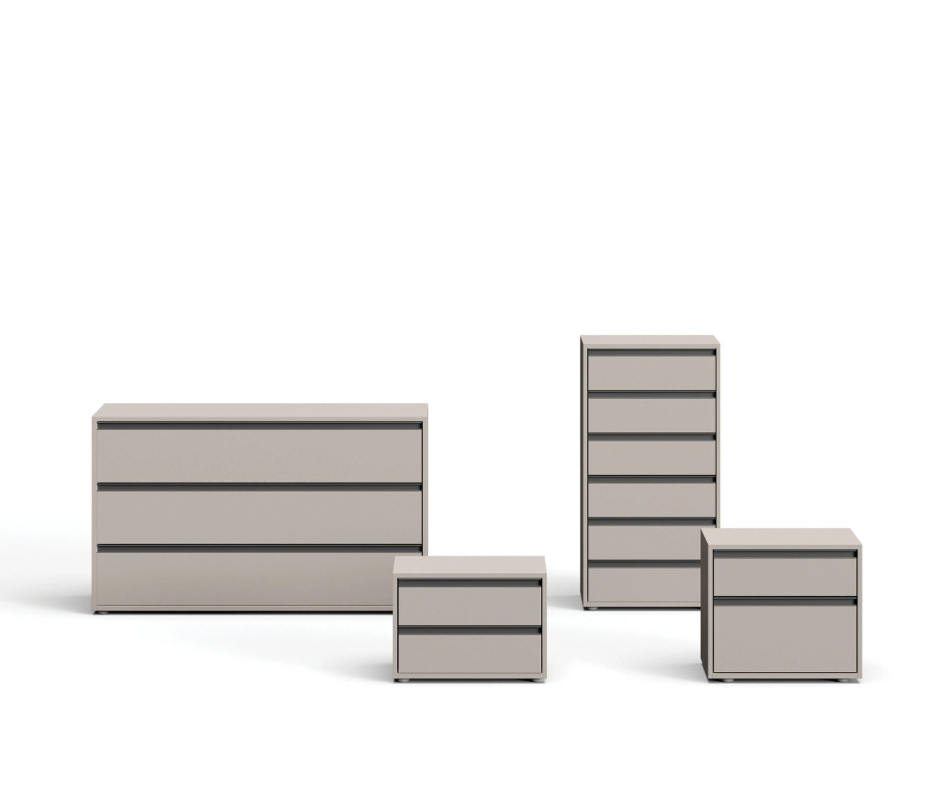 Vuoi arredare la camera da letto con Comodini e cassettiere di Orme? Ti presentiamo il modello Gruppo Notte Tratto in melaminico per spazi moderni.