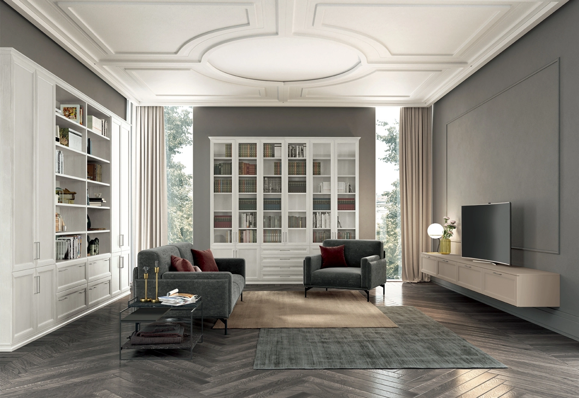Clicca e scopri le Librerie a muro classiche! Il modello Arcadia AS006 Colombini Casa saprà ultimare un soggiorno pratico e operativo.