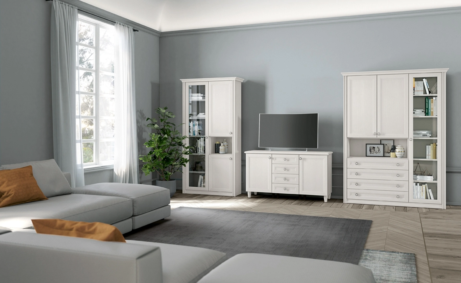 Vuoi rinnovare la zona giorno? Ottieni informazioni sulle librerie classiche a muro e arreda i tuoi locali con il modello Arcadia AS016.