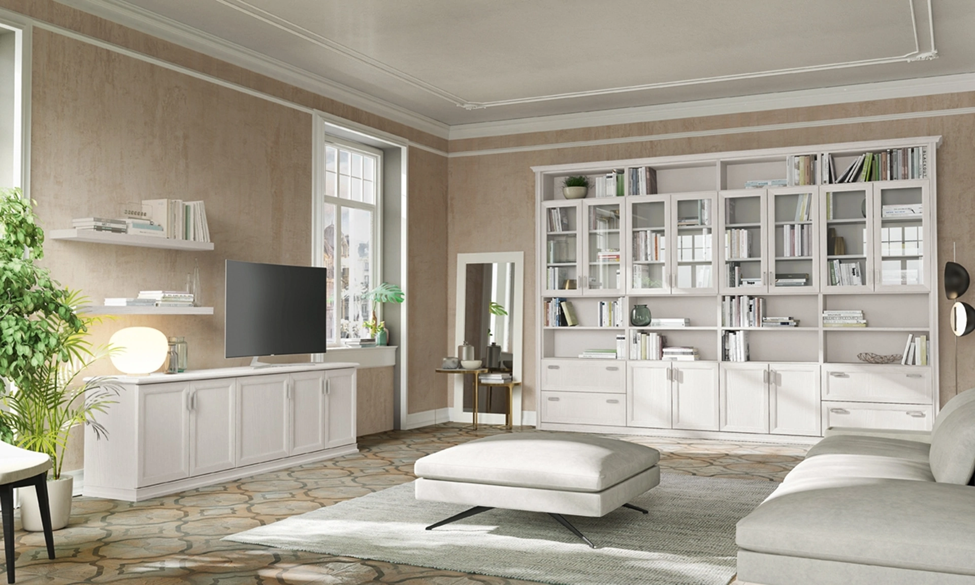 Librerie a muro super funzionali per stanze classiche: ottieni informazioni sul modello Arcadia AS017 della firma Colombini Casa!