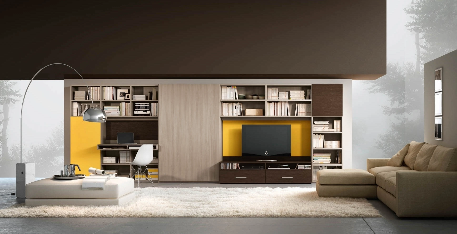 Pareti attrezzate e pensili Ferrimobili: clicca e scopri il modello Parete Attrezzata Living 73D e potrai impreziosire stanze moderne di ogni genere.
