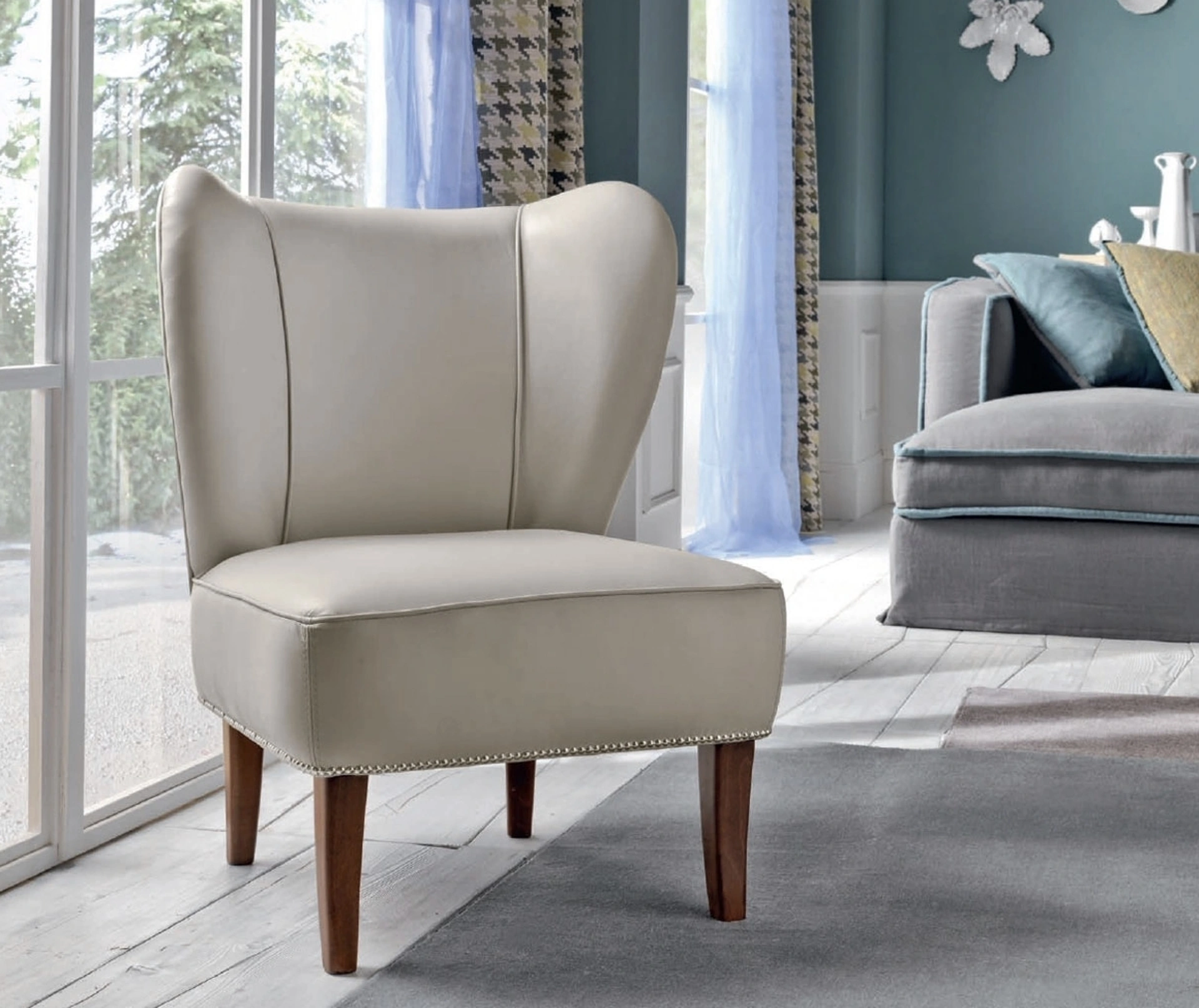 Se desideri una poltroncina per stanze classiche, clicca e leggi di più sul modello Noce Moscata in pelle del brand TreCi Salotti.