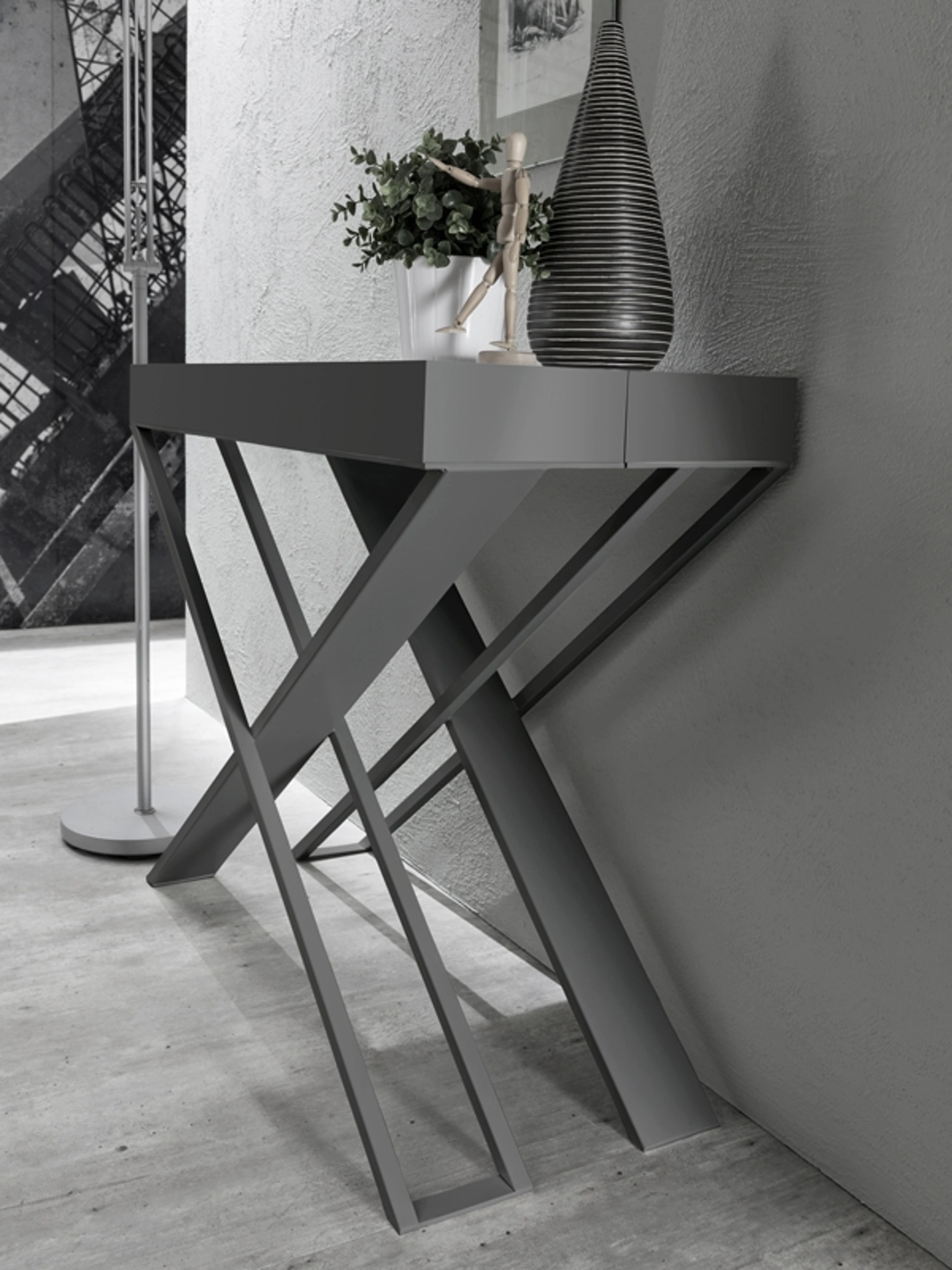 Il rinomato marchio Zamagna, specialista nella produzione di mobili in melaminico, ha scelto per la sua linea un'infinità di materiali, forme e cromie. Consolle allungabile X File di Zamagna: realizzato in materiali pregiati è connotato dalle linee decise del top e da un basamento elegante e raffinato. Se vuoi un tavolo da pranzo di elevata qualità, contattaci e ricevi info e preventivi sul modello visibile in foto. Ideali per dare vita a degli accostamenti unici con sedute e complementi moderni, i Tavoli consolle della marca sono soluzioni tra le più belle in commercio, ideali per il living e la cucina.