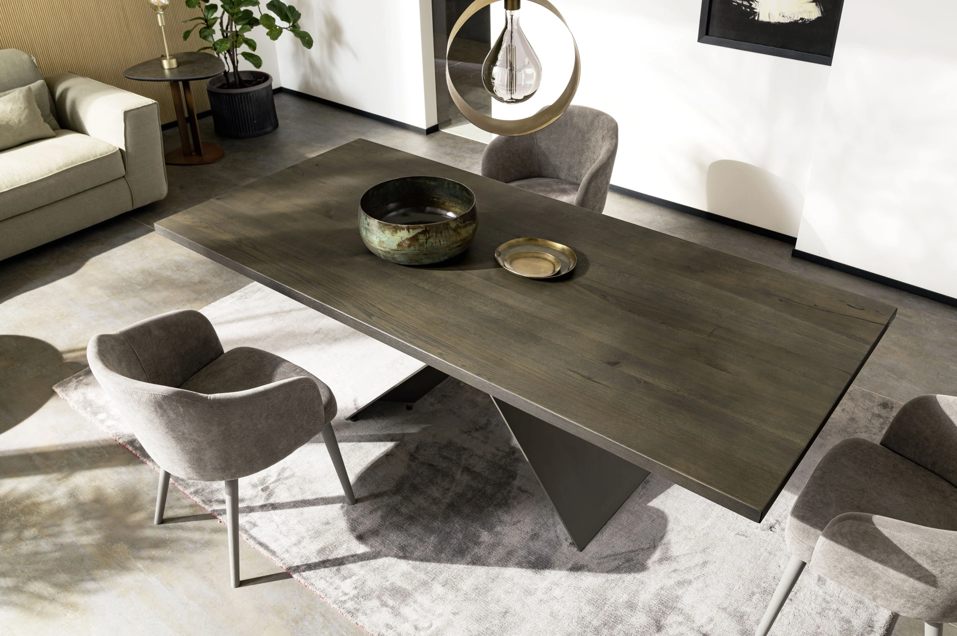 Ideali per dare vita a degli accostamenti unici con sedie e complementi moderni, i Tavoli fissi della marca sono soluzioni tra le più originali in commercio, ideali per il soggiorno e la cucina. Il noto e rinomato marchio Alta Corte, specialista nella realizzazione di mobili in legno, ha scelto per la sua collezione una vasta scelta di finiture, linee e tonalità. Se desideri un tavolo da pranzo di grande design, contattaci e ricevi info e preventivi sul modello visibile in foto. Un modello come quello nell'immagine, in abbinamento alle giuste sedie, saprà completare l'atmosfera delle stanze domestiche dedicate in assoluto all'ospitalità.