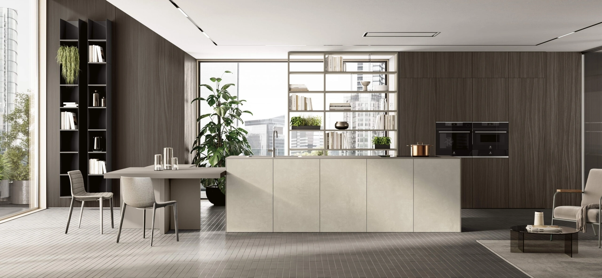 Ti attendono diverse proposte moderne con penisola per la cucina, ideali per chi cerca uno spazio intimo, semplice e immediato ma contemporaneo nello stile. Quando scegli una cucina moderna devi dare priorità al modo in cui vivi i tuoi spazi, per arredare ottimamente la tua composizione d’arredo. A rendere la Cucina Moderna con penisola Segno 02 di Colombini Kitchen una tra le più originali soluzioni del marchio, oltre ai suoi bellissimi dettagli, è il materiale: è costruita in melaminico per assicurare comfort e qualità nel tempo.